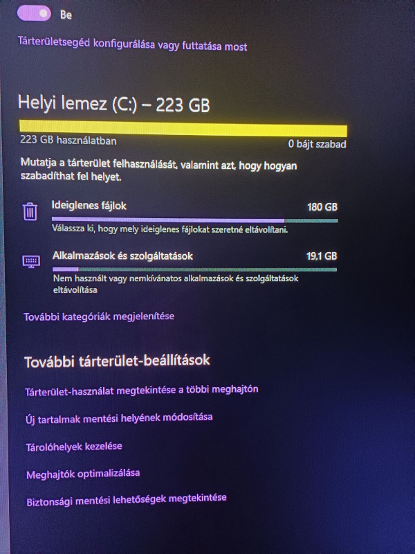 Az a 180 GB ideiglenes az irreálisan sok. Nem tudom miért nem tudja kipucolni? Nekem a ccleaner rendezi az ilyeneket. Ha win11-nél ráklikkelek akkor további tagozódást is kiír. Próbáld meg kézzel törölni az alábbi mappák tartalmát: