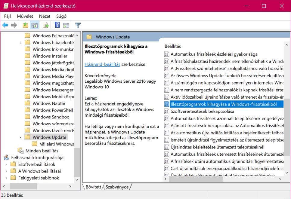 Illesztőprogramok kihagyása a Windows-frissítésekből [kép]