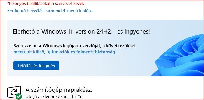 Nem ajánlja fel az upgrade-t, ha felajánlja akkor 24H2-t.