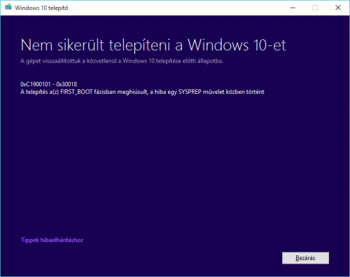 Usb-rol telepitenem a win10et,rufussal tettem ra,el is kezdi telepiteni, de amikor eler az elso ujrainditashoz telepites kozben, telepito megall, es kiirja hogy hiba lepett fel amikor a telepito ujra akarta inditani a szamitogepet, ezert ujra kell kezdeni a telepitest....