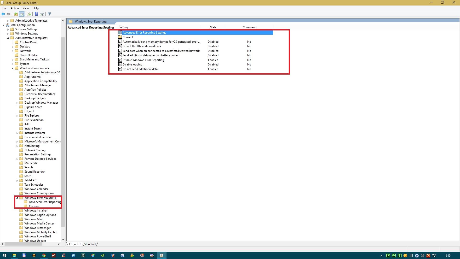 Ha valakit esetleg érdekel, akkor a Felhasználói Élmény Fokozása Program, illetve a Hibajelentések küldése is teljes mértékben kikapcsolható. Tegnap rászántam egy kis időt, így előbbit a Regisztrációs adatbázis szerkesztőben találtam meg, míg a másikat a Csoportházirend szerkesztőjében.