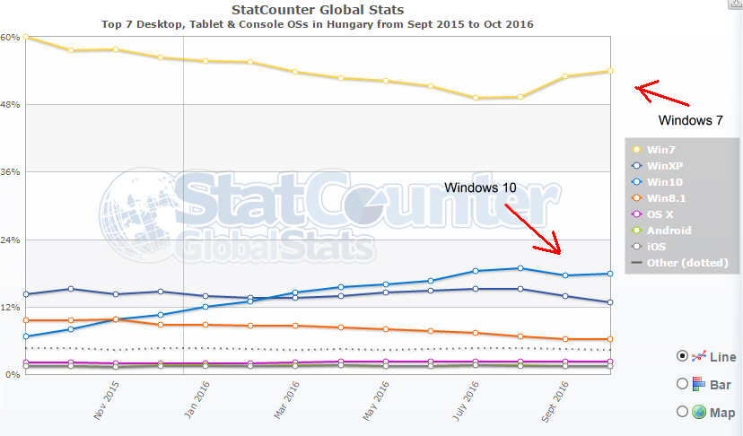 Ez elég gázos beszólás volt. Az XP már nem támogatott, így azt tényleg csak ott lenne szabad használni, ahol nagyon muszáj. A win7 még elég sokáig támogatott és a 10-től eltérően valóban stabil. Lásd korábbi kérdésem apropója: egy frissen telepített, majd automatikusan update-elt rendszer összeszarta magát és úgy tűnik, csak a reinstall segít.