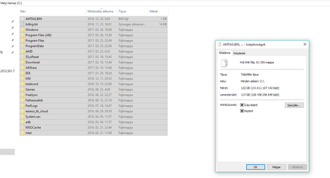 Megnyitni persze ott sem engedi, és a mappa mérete sem egyezik, de tuti ez lesz a ludas a maga 113GB-os méretével... Viszont ezt meg gondolom nem tanácsos csak úgy törölgetni, hátha nem indul el a rendszer a következő restart alkalmával.