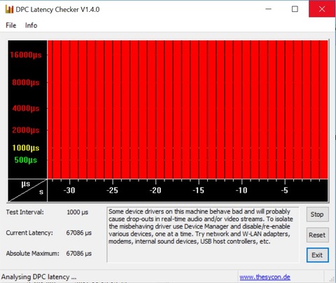 Highest measured interrupt to DPC latency (µs): 13603,784560
