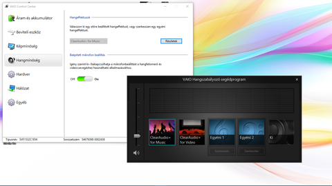 Sony Vaio Fit 15e notim van, beépített 2.1 hanggal, azaz a sima két első sztereo hangszóró mellett egy "mélynyomót" játszó is van az aljába rejtve.