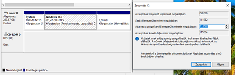 Ott van a screenshoton, hogy hova, sőt a 3. sor kivételével máshova eleve nem is tudsz semmit beírni. Valamint az is magától értetődő, hogy akkora értéket kell megadni, amennyivel zsugorítani akarod a kötetet. Alapértelmezetten egyébként általában a max. értéket ajánlja fel, annál tovább már nem tudja, nem engedi zsugorítani a lemezkezelő. Tehát, ha 80 GB-os rendszerpartíciót akarsz, akkor 221 - 80 = 141 GB, vagyis az utóbbi értéket (144384) kellene beírni. De akkorával eleve nem engedi zsugorítani a lemezkezelő, max. csak annyival, ami ott van. Meg egyébként sem tanácsos túl kicsire szabni a rendszerpartíciót.
