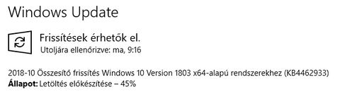 Javítások ebben a frissítésben: https://support.microsoft.com/en-us/help/4462933/windows-10-update-kb4462933