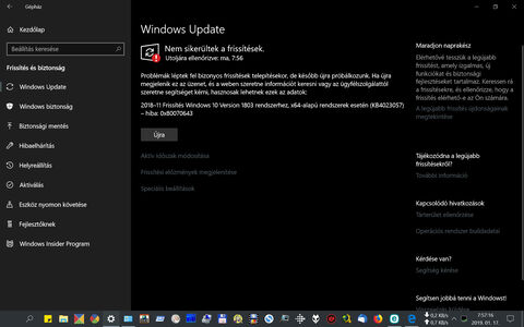 Még az sem ismert, hogy milyen kiadást használsz a Windows 10-ből, a gépházban, csoportházirendben, vagy külső programmal nincs-e megpiszkálva, késleltetve a funkciófrissítések telepítése. Ha nincsen, akkor sem annyira meglepő, hogy még nem kaptad meg. Korábban volt róla szó, hogy 2. körben most óvatosabban terítik a 1809-et és eleve nem mindenkinek fogja azonnal felajánlani a WU, akár a gépházban a frissítések keresése opcióra kattintva sem. De ez a késleltetés már korábban, a régebbi verzióknál is jellemző volt, nem egyszerre tolták ki mindenkinek és volt akiknek csak hetek, hónapok múlva ajánlotta fel a WU.Ha nem akarsz várni és biztosan most akarsz frissíteni az új verzióra, akkor a Microsoft weboldaláról letölthető a frissítési segéd és az MCT, mindkettővel lehet upgrade-elni. Vagy akár a már letöltött ISO-fájllal is, felcsatolva a fájlkezelőben és a