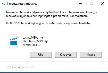 Miért nem tudok egy fájlt törölni. Ezt a hibaüzenetet dobja fel.