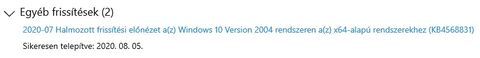 Sziasztok! Na most ilyenkor mi van? Frissült a win10 20H2-re: