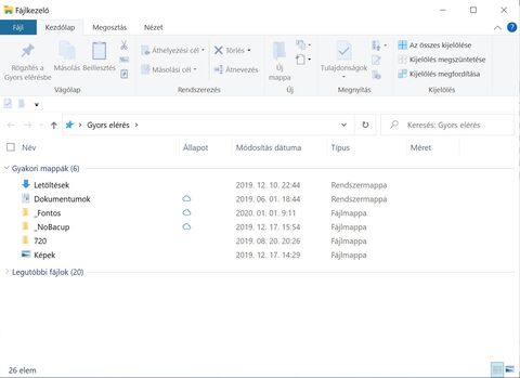 Köszönöm! Nagy nehezen megtaláltam a megoldást, amit 2021-01-13 23:09:12-kor szintén Te írtál le. (Fájlkezelő megnyitásakor az Ez a gép megjelenítése a Gyors elérés helyett)