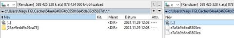 A C:\Users\Nagy FGLCache mappa üres, a Nagy F tartalma fent látható.