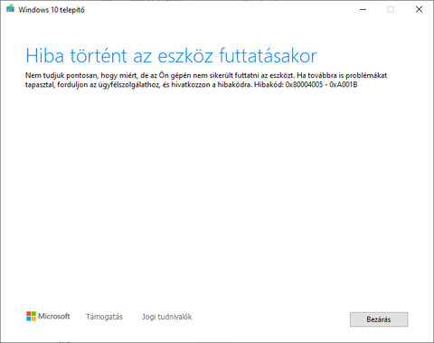 elindítom a media creation toolt, letölti, ellenőriz és enneka vége fele vagy a következő lépés elején kifagy ezzel a hibával.