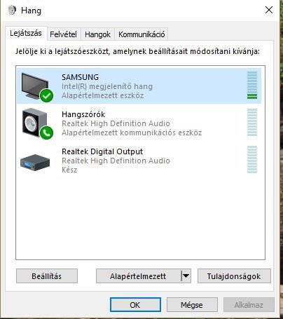 Hosszas küzdelem után a legújabb intel chip driver telepítésre előkerült a kimeneteknél a samsung / a tv-m/ megjelenítő hang. Egy fél napom ráment. Este még jó volt.