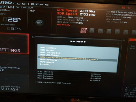 Tehát: rufussal gpt-uefi beállításokat használtam. Fat32 formátummal. Biosban beállítottam bios modeon belül az uefi-t, majd a bootnál uefi módban bootoltattam a pendriveról.