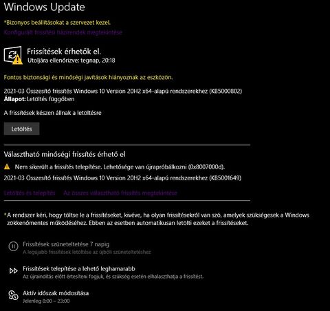 ez gyakori. mit lehet tenni? most pl amd drivert nem akarja telepiteni mert hogy a windoows frissitése folyamatban. de ez nem volt akkor igaz. csoportházirendben átállitottam 2-esre. és igysem megy. -