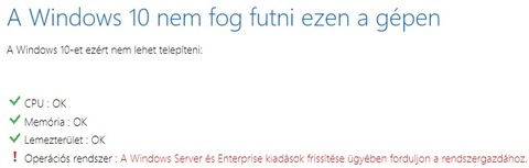Enterprise. Az áruházból akartam letölteni valamit, de csak akkor engedi, ha frissítettem, van is mellé egy link, amit ha bemásolok a böngészőbe, akkor eljutok egy microsoftos oldalra, ahonnan le tudok tölteni egy telepítőt. Ezt futtatva kilistázza és sorban kipipálja a gépem összetevőit, majd az utolsónál azt írja, hogy szóljak a rendszergazdának..