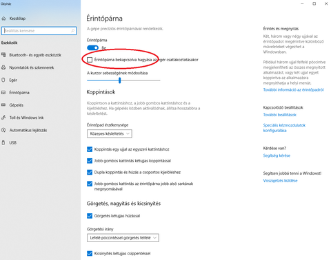 Laptopnál van olyan funkció, hogy ha egeret csatlakoztatok akkor kikapcsolja a touchpad-t, de valamiért nem működik, kikapcsolja, de ha kihúzom az egeret akkor is úgy marad, kikapcsolva. Ez elég bosszantó.