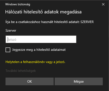 Állítottam be ideiglenesen egy jelszót, ha beírom mikor megnyitnám a megosztott mappát, azt írja hogy nem jó hálózati jelszóEddig működött, a mai napig
