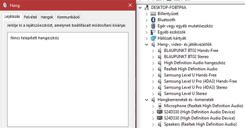 Ha jobb alul a hangszóróra jobb kattintok, akkor a hangok alatt jelzi, hogy nem fut audioszolgáltatás és indítsuk-e el. Persze. Ekkor feljön a Hang ablak, és nincs telepített hangeszközt ír a lejátszás, és a felvétel fülön is.Na ilyenkor mi van?