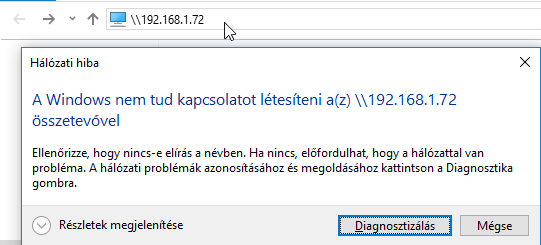 Intézőbe beírom a címsorba az "\\ip-cím\"-t és kis idejű töltés után kidobja, hogy nem tud csatlakozni. Mint említettem, a másik Win10-es gépről jó.
