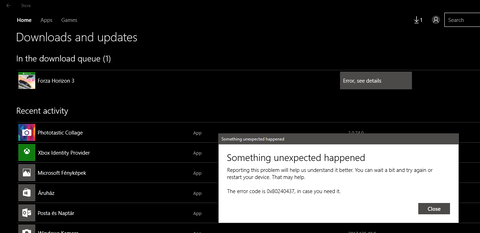 Valaki találkozott már hasonlóval? A másik kedvencem, hogy fel akartam rakni a Forzat az áruházból, de ezzel a hibával nem működik az egész áruház app se: 0x8000FFFF. Nagyon flottul megy minden...