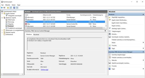 Error : A szolgáltatás (ElevationService) a következő hiba következtében leállt: