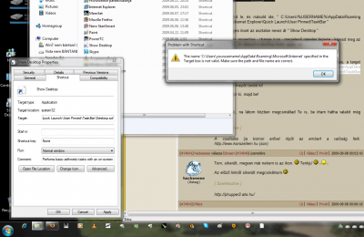 Hi!Nekem még mindig nem megy ez a Tálcás dolog,pedig szerintem mindent úgy csinálok ahogy kell.de akkor is csak az asztalon lévő ikonról működik a másik meg az eredeti ikont nyitja meg.