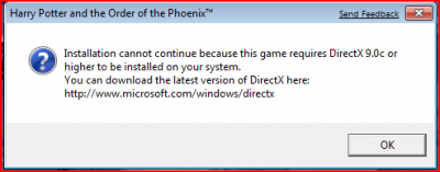 Nekem most olyan kérdésem lenne, hogy fel akarom rakni a Harry Potter 5 játékot W7-re. A játék telepítés közben megáll merthogy nem jó a directx kell a 9-es. DE nekem fel van rakva a 10-es.. Most akkor mivan?