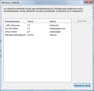 A Vista oldalsvon a Gadgetek sorrendjének megjegyzését viszont két SP2 után sem sikerült orvosolni , úgy látom