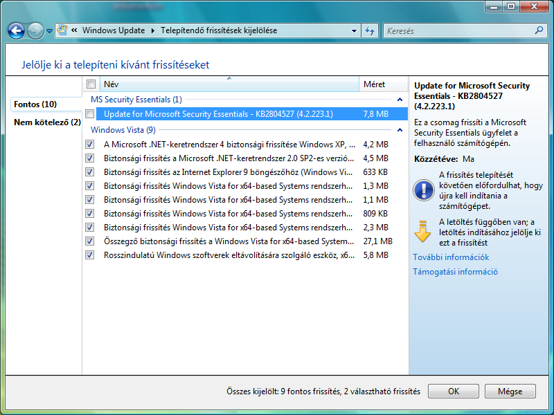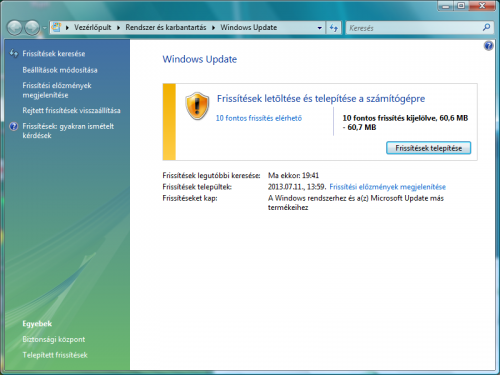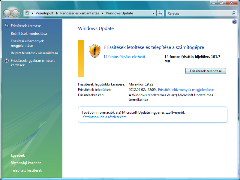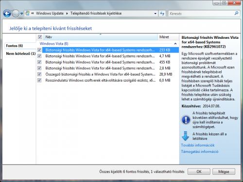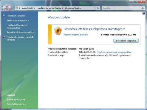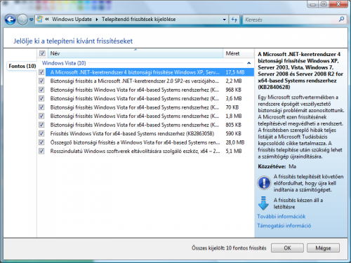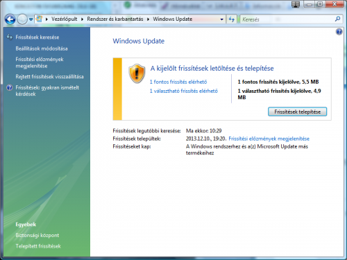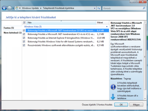 Én meg azon csodálkozom, hogy egyáltalán ajánlott fel frissítést, mert úgy tudom az SP1 előtti Visták már nem támogatottak, tehát eleve fel kell telepíteni a külön álló SP1 -et, majd SP2-t és utána update.