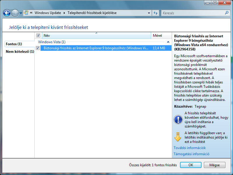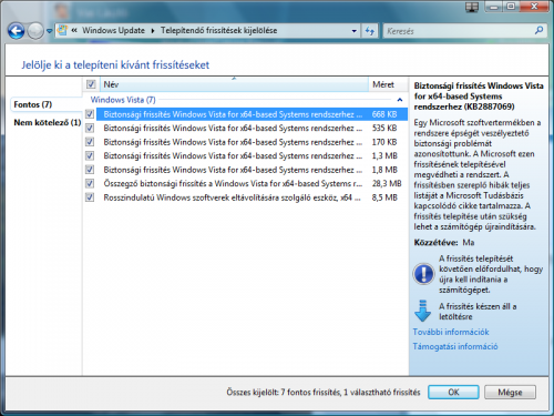 Szerk: Arra készülj fel, hogy SP2 -után lesz vagy 4 -5 hullámban egy csomó frissítés még