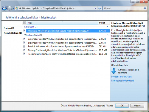 Most jutott eszembe hogy február 14-én kiadott frissítések közül egy nem ment fel, ez a KB2668562 amit a Silverlight 4-hez adtak ki, mint kritikus frissítést. Sajnos Vistára nincs 5-ös Silverlight és nem is lesz. A dologban az az érdekes, hogy bár nem ment fel, a Windows Update nem találja meg újból. Másnál ez jelentkezett?