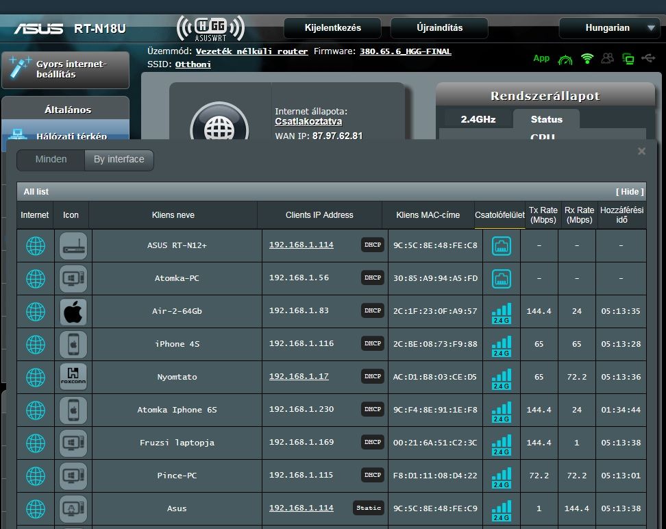 Konkrétan egy Asus N18U a fő router, és egy Asus n12+ a repeater.