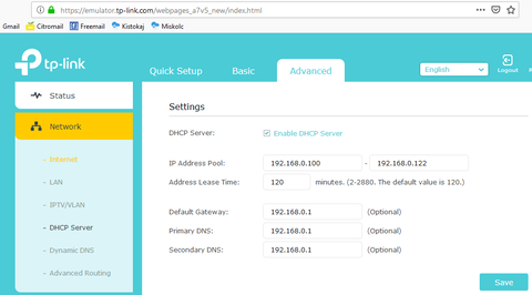 rout tartomány: 192.168.5.2-192.168.5.205 dhcpebből az egyik LAN kimenetet bedugtam a másik router: TPlink Archer A7 WAN portjába.