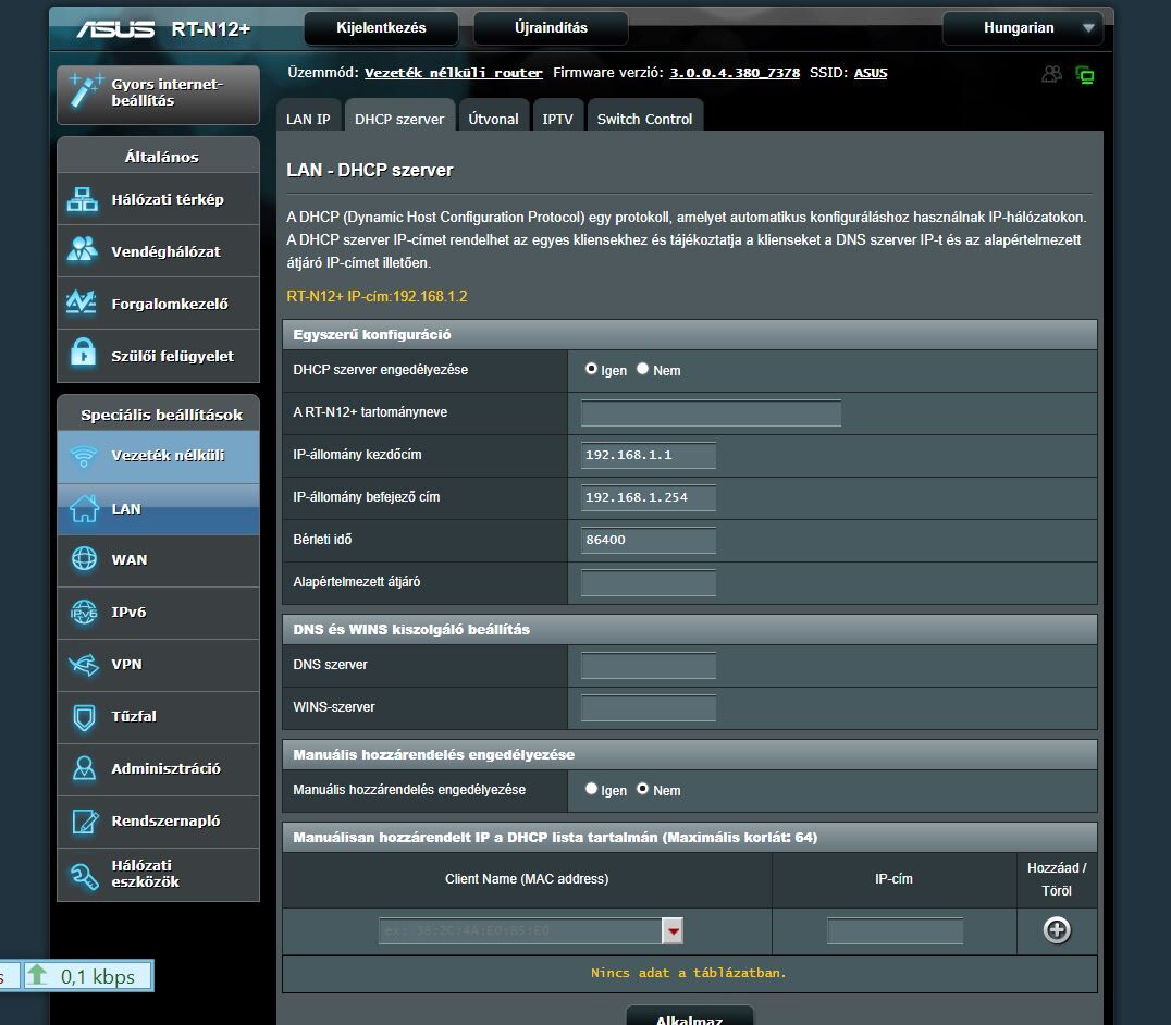 (PPPoE, Login Neme/Password vagy valami más. Bár ezt lehet, hogy az ASUS WAN kapcsolata intézi.))- Fw frissítéssel (Router OS) majd csak akkor foglalkozz, ha már nagyon unod, hogy rendben működik a kapcsolatod.
