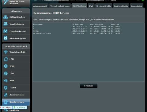 Valóban nincs a listán. Esetleg az ASUS router menüjében a kapcsolatok listáján szerepel, de bizonyára csak MAC address, IP cím.