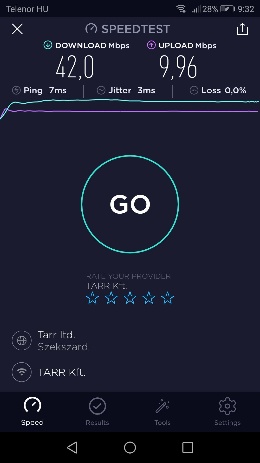Megvolt,még mindig ugyan az a helyzet,nem megy feljebb,marad a 42-44 Mbits letöltési sebesség wifin... Szerintem gagyi a ruter..(vagy mégse ?) No nem minha nagy probléma lenne,de ha már előfizettem 100 megás netre,akkor illő lenne wifin is legalább a 80-90 Mbits