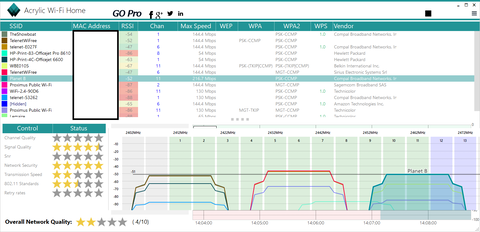 - Az InSSIDer Lite változata egy regisztráció után mutatja az egyes csatornákon a forgalmat.