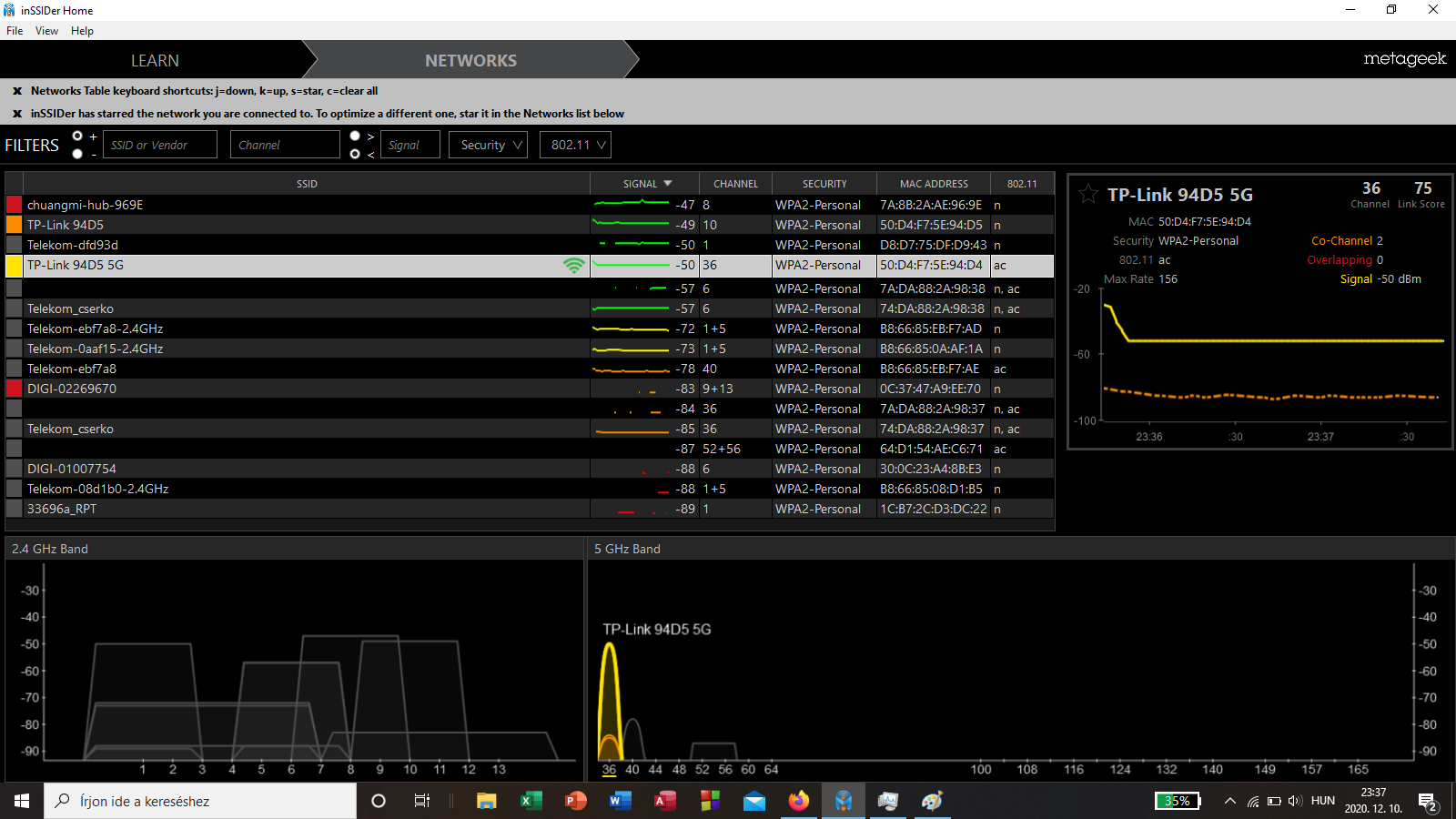Ezek közül kellene az egyikkel csinálni egy mérést a helyi viszonyokról és képernyőmentés berakni a 2.4/5 GHz-s csatorna képről.