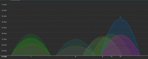 Ezek közül kellene az egyikkel csinálni egy mérést a helyi viszonyokról és képernyőmentés berakni a 2,4 GHz-s csatorna képről.