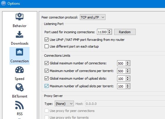 A következő lehetséges bűnös a kapcsolatok száma. Nézz bele a torrent kliensbe. Van egy globális korlát kapcsolat számon. A torrent kliensek install után default 100-on szokták hagyni bekapcsolt globális korláttal. Ha jelentősen nagyobb értékre van állítva, mondjuk ilyen 10k, vagy esetleg ki van kapcsolva a korlátozás, beleütközhetsz kapcsolat számba, és a szolgáltatói eszközöd vagy a routered eldobhatja a kapcsolatot.