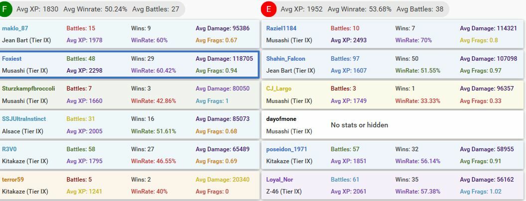 A statból valóban nagyon sok mindent ki lehet olvasni. Pl. azt is oliver miért ragad be rank10-en egy életre, pedig a Jean Bart-al 40k-val!!! magasabb az átlagsebzése mint nekem!