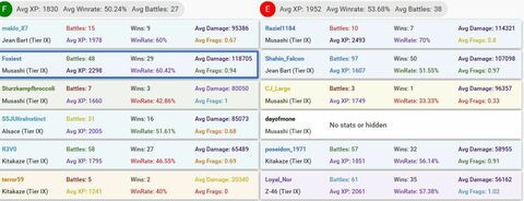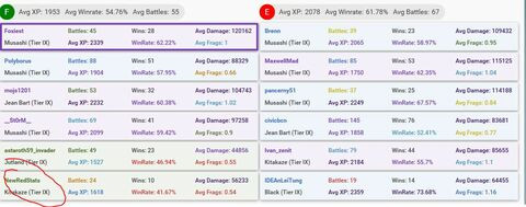 Minden csatában nálunk a negatív wr rombolók, enemynél a pluszosak.