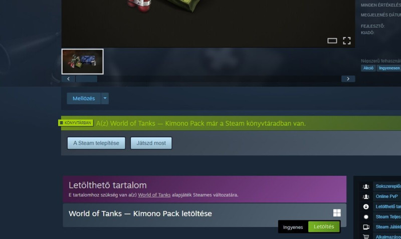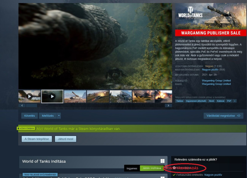 Itt a képen csak én szerkesztettem oda, de a játék indítása mellett kell lennie egy olyan fülnek hogy könyvtárhoz adás.Ha társítva van a wot fiókkal és így sem jó, akkor nem tudom miért nem működik nálad. Én most egy fun fiókon teszteltem és rögtön sikerült megkapni a steamen lévő ajánlatot.