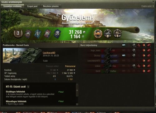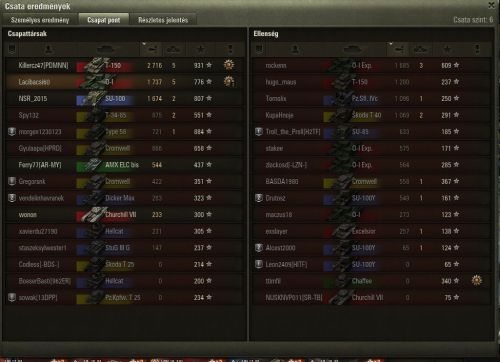 Bizonyára lesz most is majd olyan, aki szerint ez az MM így jó ahogy van és nincs vele baj, de az inkább ne is szólaljon meg, maradjon csendben! Ez az MM úgy szar ahogy van! Nem értem, hogy lehet szinte T8-as tankok közé bedobni 2-2 db T10 tankot?!? (tudom, látom nálunk csak egy T10 volt a másik T9-es med volt csak) PLÁNE!!!!!!!