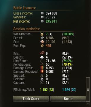 (#108287) Emu: "arannyal nem próbálkoztak?". A Skoda T-40 köpte rám piszkosul. Talán ha egyszer sebzett vele. Nem néztem vissza saját magam (még), de lehet, hogy más is lőtt arannyal, csak hát ebben a csatában az én RNG-m volt felcsavarva.
