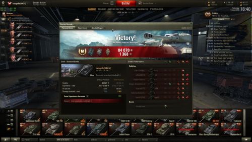 Egészen korrekt köröket lehet a géppel menni. Eddigi "legnagyobb" lövésem egy M103 one-shot a csata második percében... (Aztán következőre kikaptam még egy M103-at, szakaszban voltak, biztos nagyon örültek.) Mindenesetre én már csak a küldetések miatt hajszolom őket, G.W. Tiger P, G.W. Panther meg a kis FV, ennyi bőven sok is. -