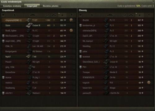 Kelett hozzá 300+ kamikaze kör bulldoggal meg 300+ kör JP II vel, su-122-54el meg csata elején átrongyoltal es löttem az artykat, néha meglepö módon sikerült 3 artyt is kilöni mielött kilöttek.Kaptam is reportot, ahhoz képest hogy 3 hétig igy játszottam csak 1 nap bann lett az eredménye