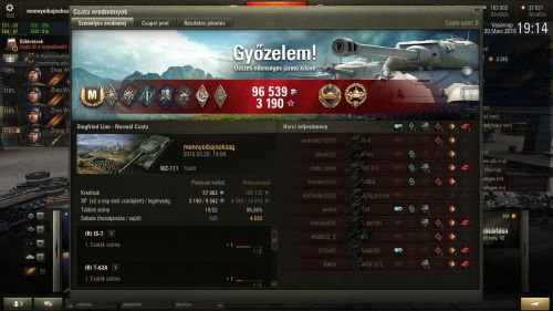 szerk.: tegnap ritka jó napom volt IS-3-mal, 13 meccs 11! győzelem! Az átlagsebzés sem lehetett rossz, arról sajna nincs pontos infóm, csak annyi kb. hogy tegnap mentem még 5 meccset a G.W Tiger P-vel, és a 18 meccsnek összesen lett lila átlaga, pedig nem mentem kiemelkedő köröket a artyval.
